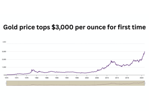 Gold price passed $3,000 USD per ounce for the first time on 14 March, 2025. Gold $3,000 news Gold pops above $3,000/oz for first time in historic safe-haven rally “Gold broke through the key $3,000 barrier on Friday for the first time as investors piled on to a historic rally in the safe-haven asset to […]